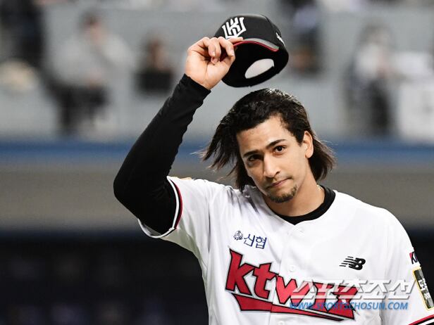 14일 서울 고척스카이돔에서 KBO리그 한국시리즈 1차전 KT와 두산의 경기가 열렸다. 8회 2사 1루에서 KT 선발 쿠에바스가 마운드를 내려왔다. 팬들을 향해 손을 들어 인사하고 있는 쿠에바스. 고척=송정헌 기자songs@sportschosun.com/2021.11.14/
