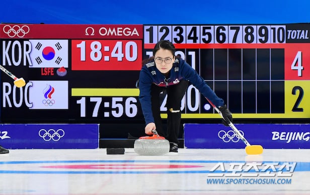 결국 파죽의 2연승. 세계랭킹 4위 ROC(러시아올림픽위원회)가 제물이었다. 한국 여자 컬링 국가대표 4인조 '팀킴'은 12일 중국 베이징 국립 아쿠아틱 센터에서 열린 2022 베이징동계올림픽 여자 컬링 예선 3차전에서 ROC(러시아올림픽위원회)를 9대5로 물리쳤다. 8엔드까지 김은정의 샷 적중률은 무려 94%. 한국 중계진, 기자들 뿐만 아니라 외신 기자들도 감탄할 수밖에 없는 수준이었다.