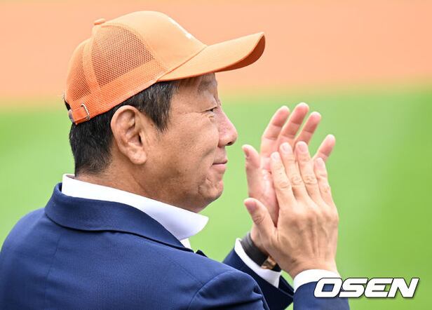 경기에 앞서 최윤 OK금융그룹 회장이 박수를 치고 있다. 2022.06.18 /sunday@osen.co.kr