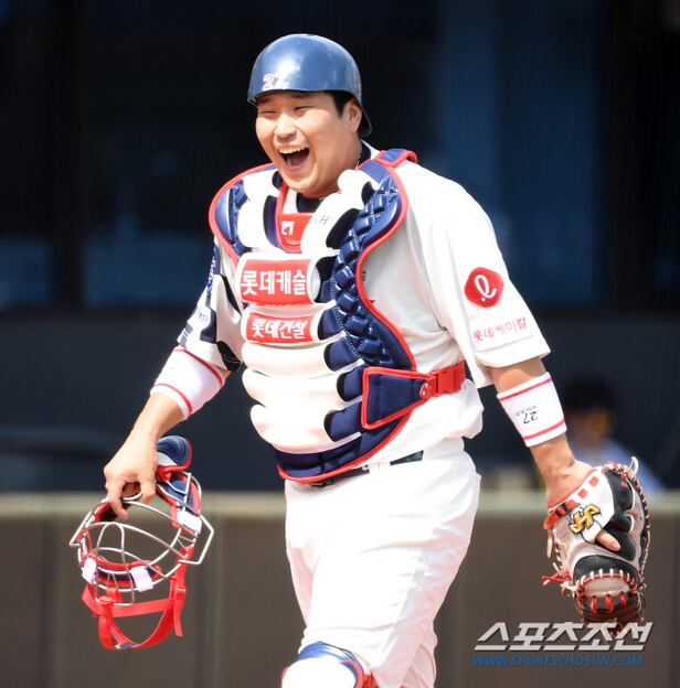 2023 KBO리그 롯데 자이언츠와 KIA 타이거즈의 경기가 4일 부산 사직구장에서 열렸다. 3회초 2사 3루 롯데 포수 유강남이 KIA 고종욱을 3구삼진 처리 후 미소 짓고 있다. 부산=박재만 기자pjm@sportschosun.com/2023.06.04/
