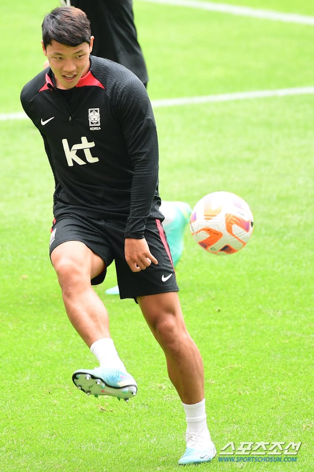 클린스만 감독이 이끄는 축구국가대표팀 선수들이 15일 부산아시아드경기장에서 소집훈련을 이어갔다. 황희찬이 패스 훈련을 하고 있다. 한국과 페루는 오는 16일 부산아시아드주경기장에서 A매치를 갖는다. 부산=최문영 기자deer@sportschosun.com /2023.06.15/