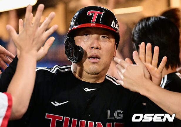 LG 트윈스 김현수가 5회초 2사 1,2루 오지환의 1타점 중전 적시타 때 득점을 올리고 하이파이브를 하고 있다. 2023.06.22 / foto0307@osen.co.kr