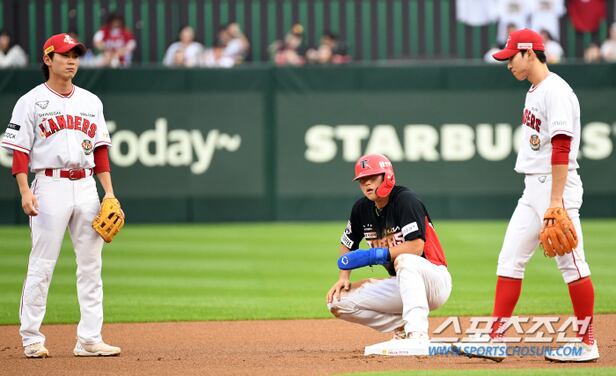 2023 KBO리그 SSG 랜더스와 KIA 타이거즈의 경기가 6일 인천 SSG랜더스필드에서 열렸다. 1회초 1사 1루 KIA 김도영의 도루를 SSG 박성한이 차단하고 있다. 인천=박재만 기자pjm@sportschosun.com/2023.07.06/