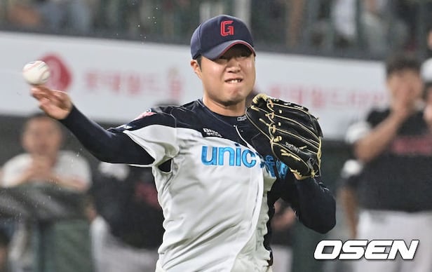 롯데 자이언츠 정성종이 1루에 공을 던지고 있다. 2023.07.08 / foto0307@osen.co.kr