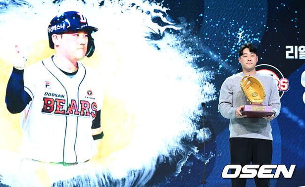 리얼글러브 1루수상을 수상한 두산 양석환이 기념촬영을 하고 있다. 2023.12.01 /sunday@osen.co.kr