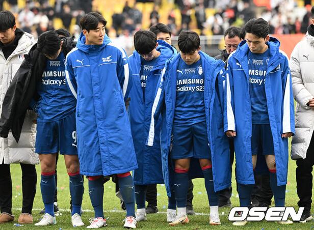 경기 종료 후 수원삼성 선수들이 관중에게 인사를 하고 있다. 2023.12.02 / ksl0919@osen.co.kr
