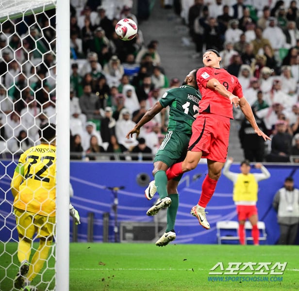 30일(현지시간) 카타르 알라이얀 에듀케이션 시티 스타디움에서 열린 2023 아시아축구연맹(AFC) 카타르 아시안컵 16강전 사우디아라비아와 대한민국의 경기. 조규성이 종료 직전 헤더로 골망을 흔들고 있다. 알라이얀(카타르)=박재만 기자 pjm@sportschosun.com/2023.01.30/