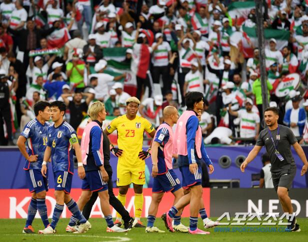 3일(현지시간) 카타르 알라이얀 에듀케이션 시티 스타디움에서 열린 2023 아시아축구연맹(AFC) 카타르 아시안컵 8강전 이란과 일본의 경기. 이란에 패하며 4강 진출에 실패한 일본 선수단이 아쉬워하고 있다. 알라이얀(카타르)=박재만 기자 pjm@sportschosun.com/2023.02.03/