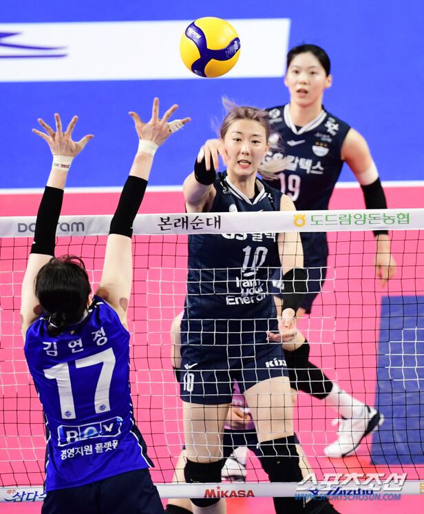 18일 화성 종합실내체육관에서 배구 V리그 여자부 IBK기업은행과 GS칼텍스의 경기가 열렸다. GS칼텍스 강소휘가 IBK 블로킹을 앞에 두고 스파이크를 날리고 있다. 화성=송정헌 기자songs@sportschosun.com/2024.02.18/