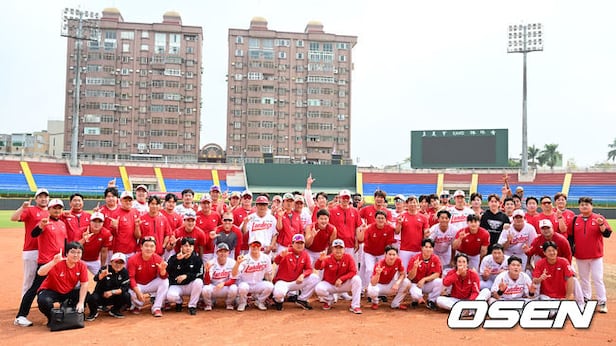 [OSEN=자이(대만), 김성락 기자] 6일 오후(한국시간) 대만 자이시에 위치한 자이시립야구장에서 SSG 랜더스와 대만 프로야규 라쿠텐 몽키스의 연습경기가 열렸다.