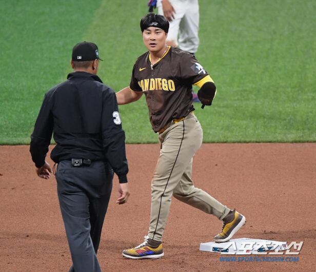 21일 서울 고척스카이돔에서 열린 'MLB 월드투어 서울 시리즈 2024' LA 다저스와 샌디에이고 파드리스의 경기.4회초 1사 1루 샌디에이고 캄푸사노 타석. 김하성이 2루 도루를 성공시키고 있다. 고척=정재근 기자 cjg@sportschosun.com/2024.3.21/