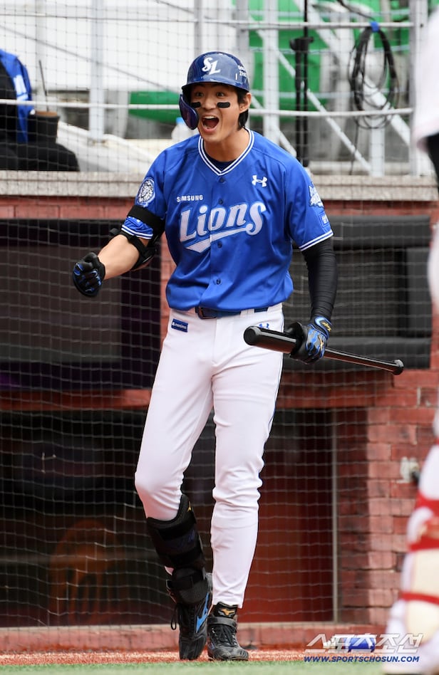 9일 인천SSG랜더스필드에서 열린 SSG와 삼성의 준PO 1차전. 1회초 삼성 이재현이 초구를 노려 솔로포를 터뜨리자 구자욱이 기뻐하고 있다. 인천=박재만 기자 pjm@sportschosun.com/2025.10.09/