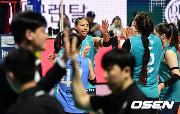 GS칼텍스가 승리를 기뻐하고 있다. 2026.02.11 /cej@osen.co.kr