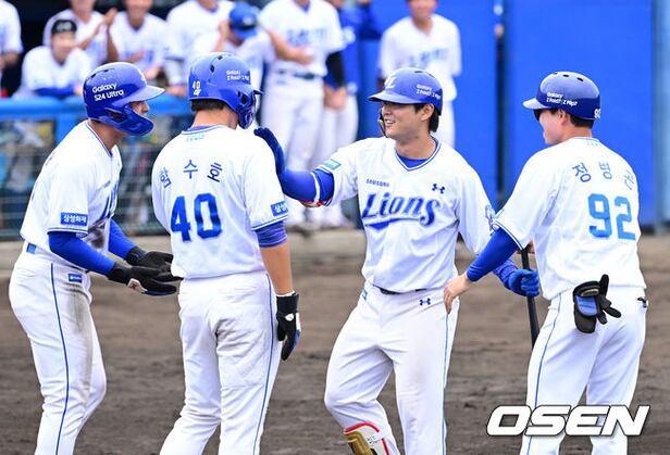 4회말 1사 1, 2루 상황 삼성 양우현이 역전 우월 스리런포를 날리고 홈을 밟은 뒤 선행주자들과 기뻐하고 있다. 2026.02.20 / dreamer@osen.co.kr