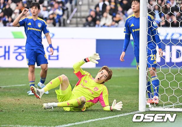 울산 HD 조현우 골키퍼가 슛을 막아내고 안도의 한숨을 쉬고 있다. 2026.02.28 / foto0307@osen.co.kr