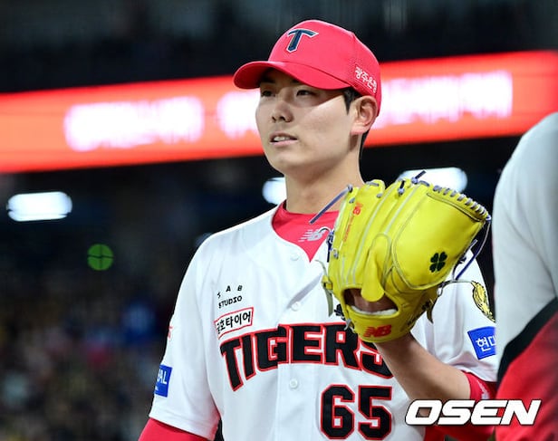 7회초 2사 2루 상황 삼성 김태훈을 외야 뜬공으로 이끌며 실점없이 이닝을 마무리지은 KIA 투수 성영탁이 더그아웃으로 향하며 동료들과 인사를 나누고 있다. 2026.04.07 / dreamer@osen.co.kr