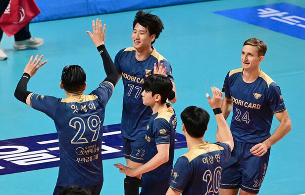 우리카드 외국인 선수 잇세이(19점)와 아르템(17점), 송명근(13점)이 공격을 이끌었다. 세터 한태준의 안정된 볼배급 속에서 윙 공격 라인이 한국전력을 압도했다.