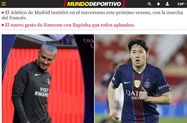 스페인 '문도 데포르티보'는 5일 "아틀레티코 마드리드가 여름 이적시장에서 이강인 영입을 다시 시도할 가능성이 있다"라고 보도했다. 앙투안 그리즈만의 이탈 가능성이 제기되는 상황에서 대체 자원으로 이강인이 언급됐다는 설명이다.