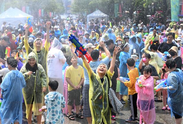 4년만에 열린 온천수 물총 대첩