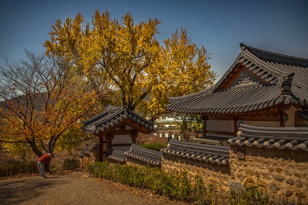 경상남도 밀양 금시당백곡재의 450여 년 된 은행나무는 가을의 끝자락인 지금 절정을 맞이했다.